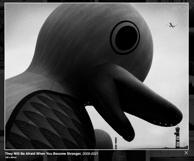 The visual impact is very significant for the meaning of the object. When an inflatable duck reaches a certain size, it can bring an astonishing sense of pressure to an originally harmless and cute image. Here, an aeroplane contrasts with it, both directing the viewer’s gaze beyond the frame and balancing the composition. When we feel powerless in life, we can also think: even doing something unusual can, at least in terms of belief, make us stronger and larger, evoking a slight awe of ourselves.